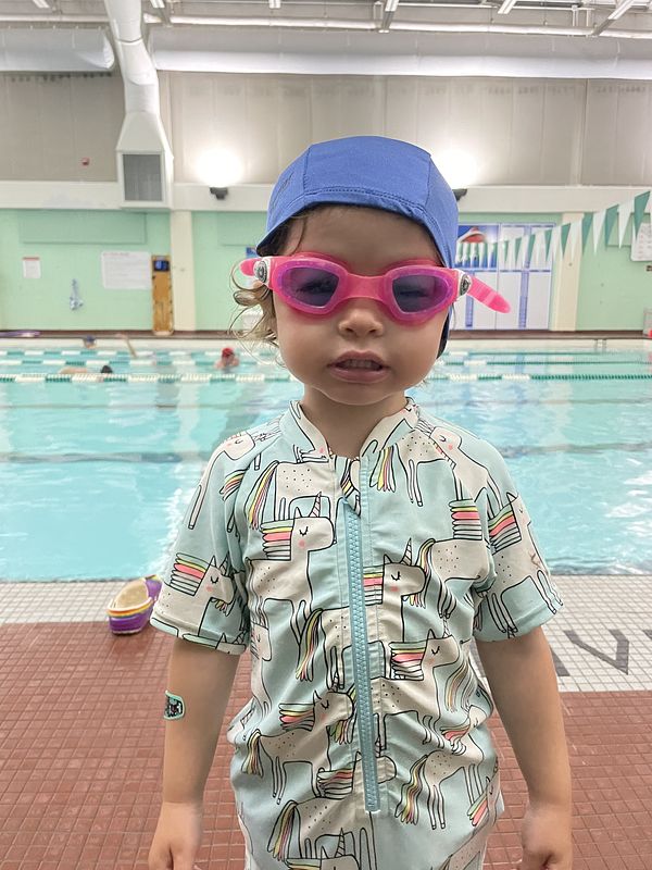 Vela flew for the first time when visited California and Seattle in April. She started swim lessons and can now float in the pool. She has started scooting and learning how to ride a balance bike.